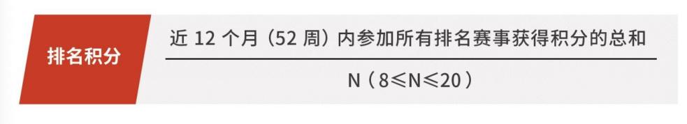 1. 其中,“N”代表小球手在近52周内的比赛数量。52周内,一名小球手的最低参赛场次为8场(未满8场,按8场进行计算),最高为20?。ǔ?0场,按最近的20场比赛计算)。